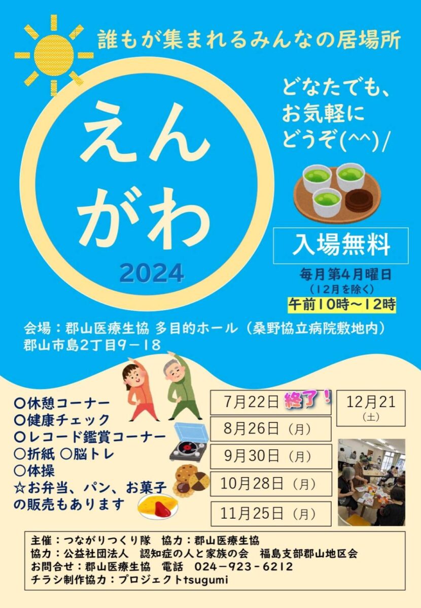 郡山医療生協多目的ホール(桑野協立病院敷地内)にて開催している、みんなの立ち寄りどころ「えんがわ」、2024年 […]