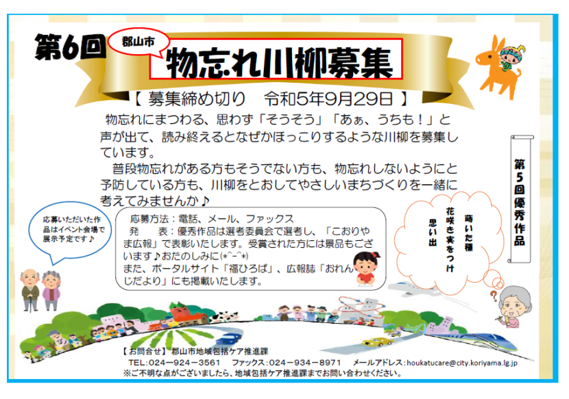 令和5年度 物忘れ川柳を募集します – 郡山市公式ホームページ 郡山市では、認知症になっても希望を […]