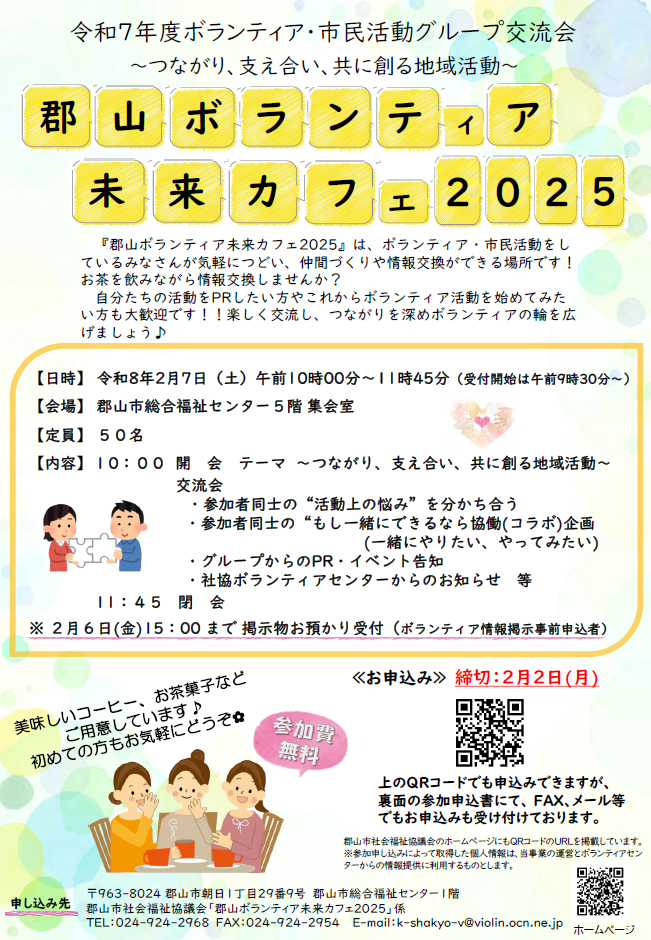 令和8年2月7日(土)に『郡山ボランティア未来カフェ2025』を開催します。