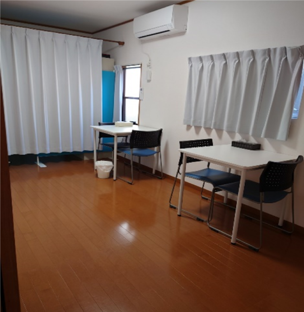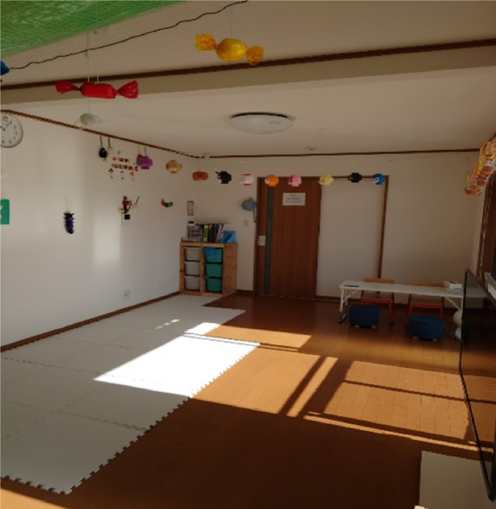 訓練室は南向きの大きな窓があり、日が入るため明るく温かいお部屋です。主な活動は、こちらの部屋で行います