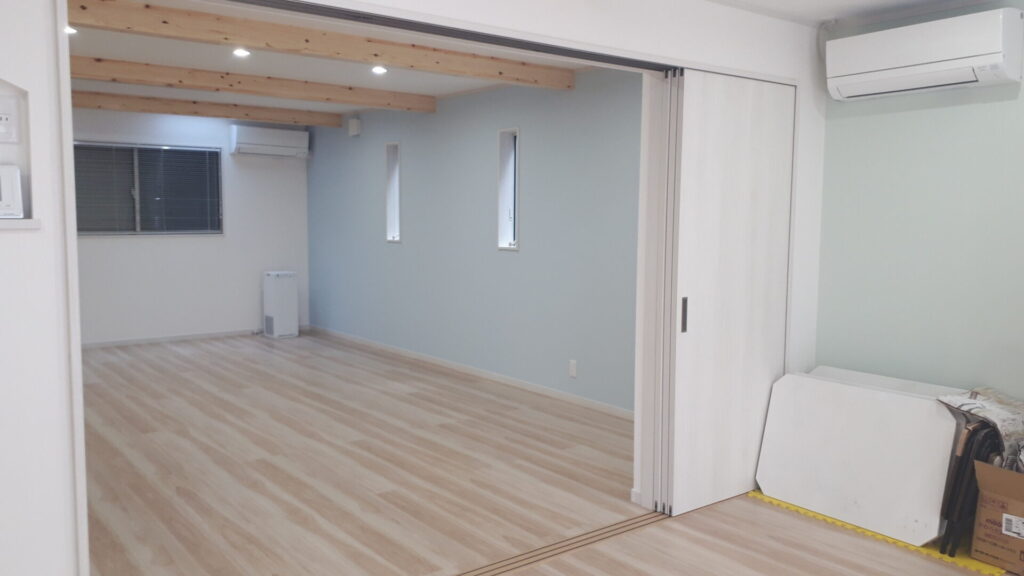 活動や余暇を過ごすスペースです。者が少ない為、身体を動かした活動や遊びをする事が出来ます。隣は勉強をしたり、静かに過ごす部屋となっています。静と動を分けて過ごせる空間になっています。