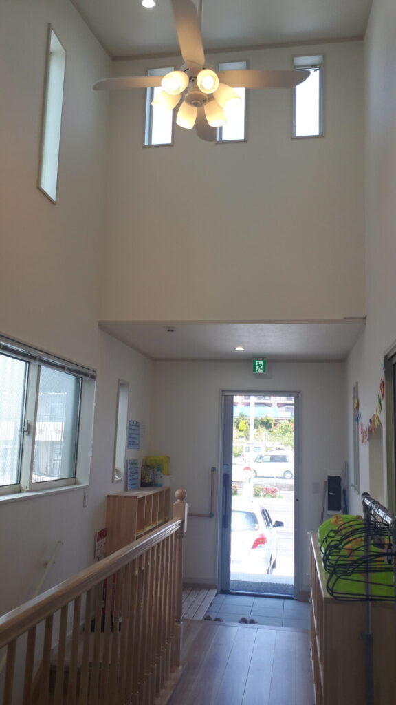 2階が入口となっていて、来所時にこちらで身支度を行っていただきます。ロッカーに荷物をしまい、宿題などを準備して、1階の活動部屋に移動します。