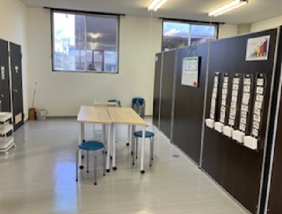 療育室は2階にあります。広いワンフロアを用途別に仕切っています。