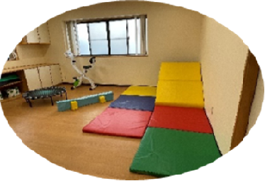 ホール~三角、カラーマット、ラージボールなど使用し、それぞれの思いを膨らましながら体を動かして遊ぶエリアです。