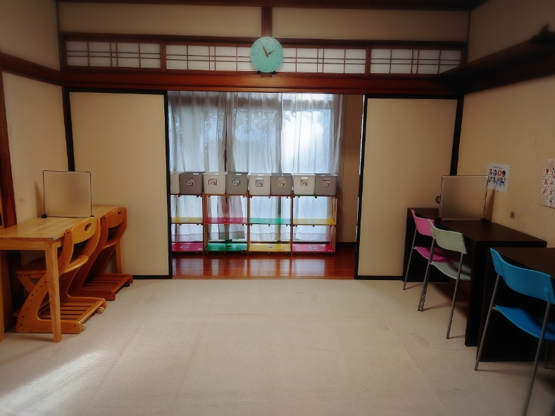 主に子供たちが活動するスペースです。活動内容によってテーブルを出し、集中できる環境作りをしています。