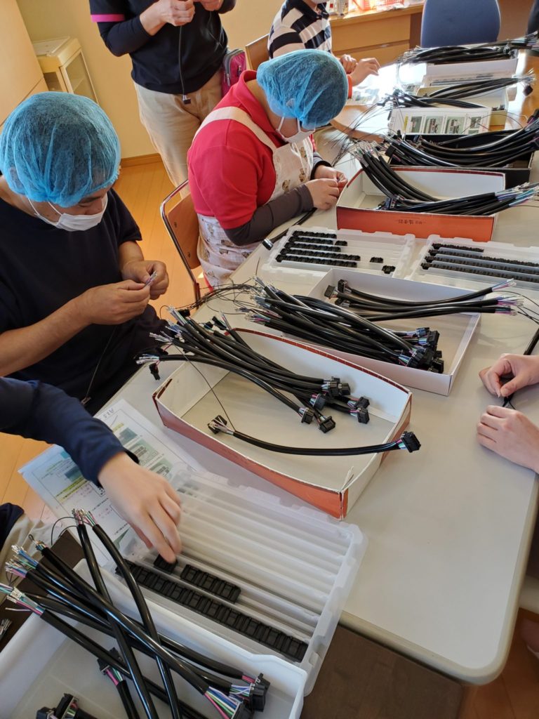 主に弁当と菓子の製造・販売をしています。ほとんどの工程を利用者さんが手作りし、計量から袋詰めを行っています。イベント等へも参加し、地域の方々との交流やあいさつ、お金のやり取りなど多くのことを経験しています。また、自動車部品の下請け作業等も行っており、より自分に合った仕事を選択できます。