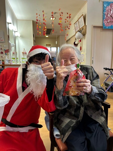 『デイサービスセンター守山』の12月イベントの様子をご紹介します。今月の守山会は『クリスマス会』を開催しました。サンタクロースに仮装した職員が登場し、ビンゴ大会を行いました。ビンゴになったお客様からプレゼントを選んで頂き、おやつは職員手作りのトナカイケーキで、大変喜ばれました。12月のお誕生日会では、ミニクッキングで『肉まん』を作るとともに、お誕生月のお客様には職員手作りのお誕生日カードをプレゼントさせて頂きました。これからもいっぱい楽しい思い出を作っていきましょうね。守山工房では『クリスマスの置物』作りを行いました。細かい作業もありましたが、みなさん真剣な表情で取り組まれ、素敵な置物が出来上がり、お客様に大変今日好評でした。是非、ご自宅で飾って下さいね。コロナウイルス、他感染症に注意して今後も皆様の健康と笑顔の為にデイサービスセンター「守山」は元気いっぱい楽しく営業しております。