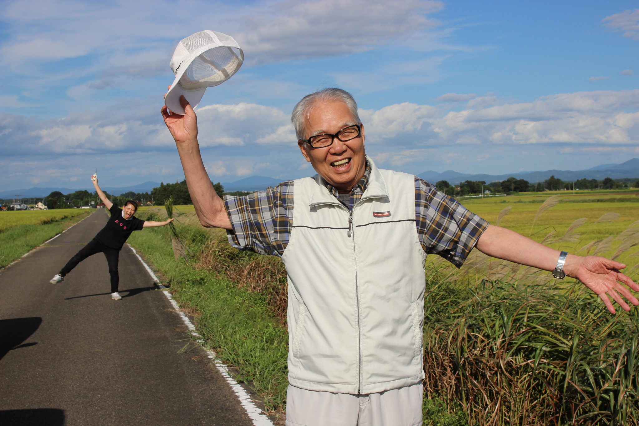 黄金色の景色とすすきの前で🎶