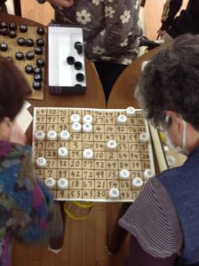 板のマスに書かれた数字と同じ数字のキャップを並べる脳トレグッズです。