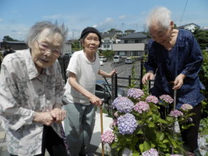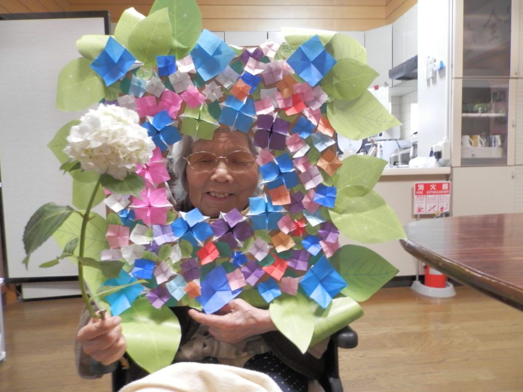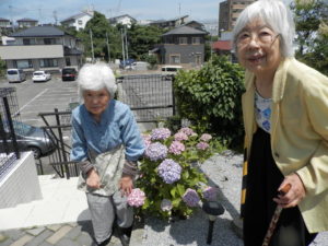 ご利用者様が育ててくださった、アジサイと一緒にパチリ📷