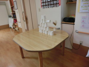 先日初めて紙コップを使った的当てを行いました(*^-^*)