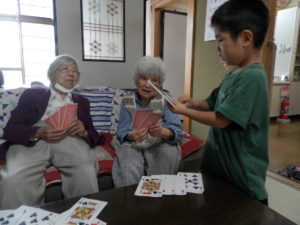 皆で、一緒にトランプのゲームを行ったり、本当にひ孫をかわいがるような、そんな姿が見られました。