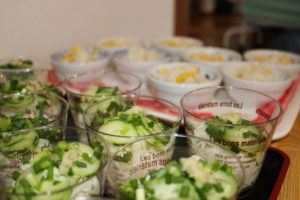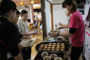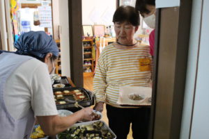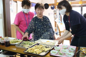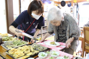 何種類ものお料理から、利用者さんが好きな分だけお皿に盛りつけてもらいます。