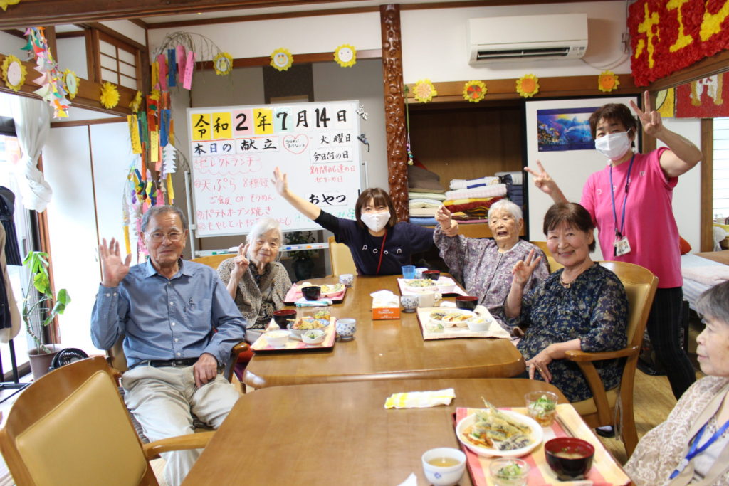 デイサービスセンターポエム郡山賀庄では、月に一度、利用者さんと外食に出かけていたのですが、今年は新型コロナウィルスの影響で、数か月間自粛しています。