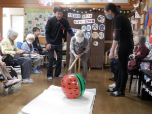 さあ、最後は本物のスイカをしっかり割っていただきましょう(`・ω・´)ゞ