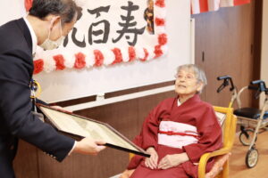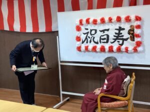まずは郡山市長寿福祉課による表彰状と記念品の贈呈式