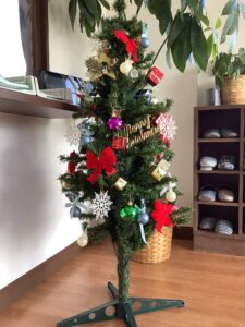 ツリーは玄関先に飾り、皆様の目にすぐ入るようにあります😍