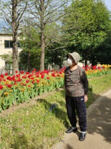 綺麗なチューリップを観ながら歩いていると
