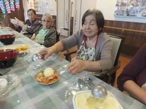 クレープ生地を焼き、フルーツ・アイスを乗せました!!