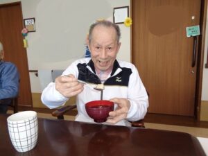 「お汁粉美味しいね。これからも健康でいられるといいな。」と皆様、大満足😋