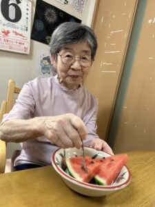 「スイカを食べましたー」「美味しかったですー」