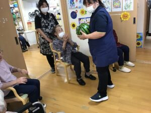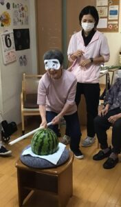 先日の行事『スイカ割り』についてのご紹介になります。