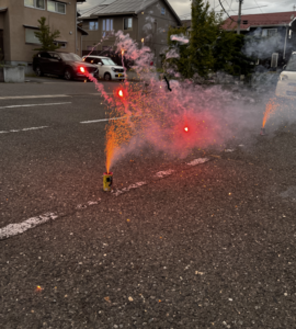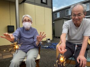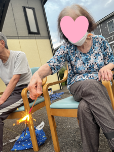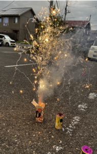 エスポワールでは、24日に日が暮れる時間帯に「花火」をして楽しみました!(^^)!手持ち花火や噴出花火を準備!