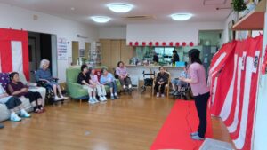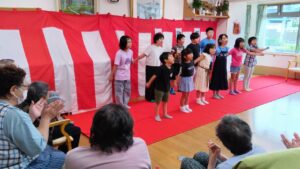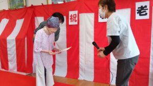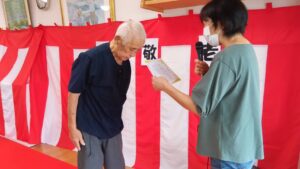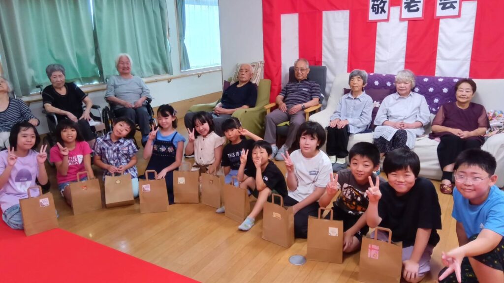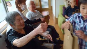 来てくれた子供達に利用者からプレゼントを手渡ししていただき