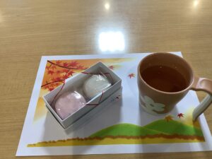 おやつは、もちろん紅白饅頭🥮🍵