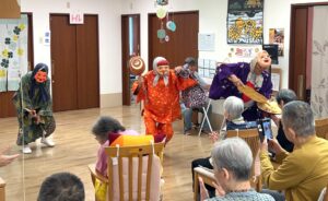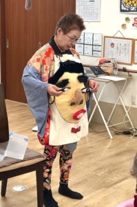 語り部さんが話をしながら手作りの顔を完成させたり・・・