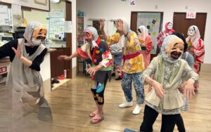 一緒に踊っていました・・・面白いお面ですね・・・笑