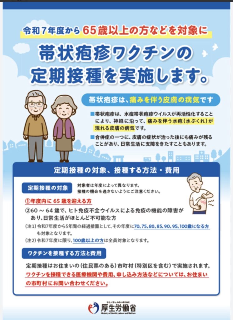 ここ最近、帯状疱疹ワクチン💉は打ったほうがいいの?と質問される事が