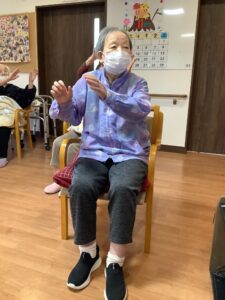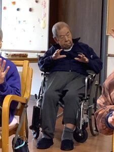 午前中の体操です。しっかり腕を動かしています。