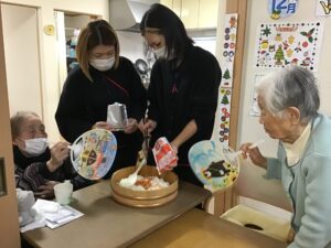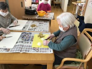 職員と利用者様も協力して下さりお祝いの昼食を作って下さいました。