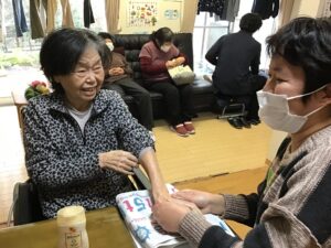冷たい手先が、ぽかぽか暖かくなり、荒れ気味だった肌もしっとり。クリームの香りでリラックス😌💞にっこり笑顔の利用者様でした🎶