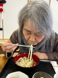 2日の昼食のメインは「けんちんうどん」です!具だくさんの野菜と一緒に皆さん美味しそうに召し上がっておりました!