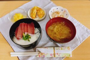 次の日も豪華な昼食ですね!「鮪丼」に3日とろろを合わせて美味しく頂きました !