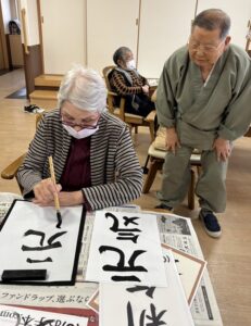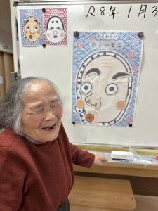 エスポワールでは2日に「書き初め」を行い、3日には「福笑い」をして楽しみました!2日間の様子をお届けします♪