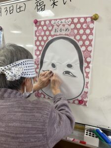 お腹いっぱいになり、午後は「福笑い」をしました!(^^)!