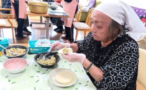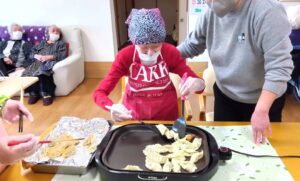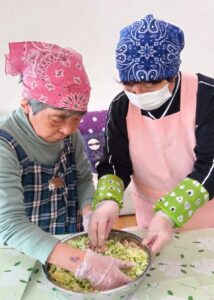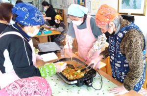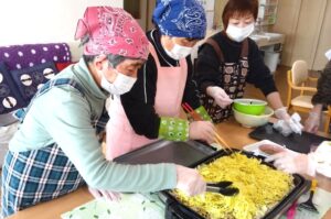 久留米ボランティアさんと一緒に料理作りをした様子を