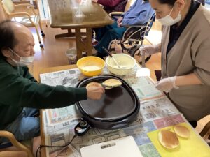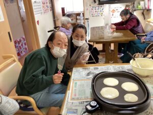 男性利用者様と料理不得意スタッフが