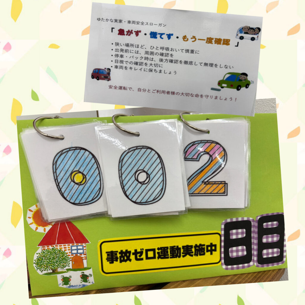 に加えて、4月から「事故ゼロ運転実施中」の掲示が始まりました。