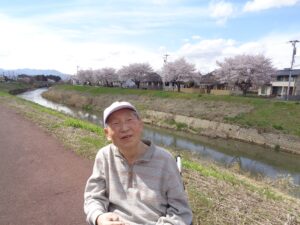 「風が心地よい」「立派な桜の木、満開だね」「きれいだね」「ピンク色の花びらかわいい」とお話をされながらじっくりとお花見を楽しまれてました。
