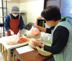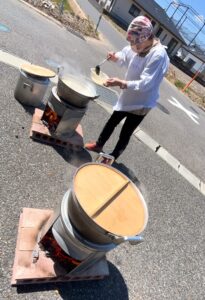 かまどが準備され🤚豚汁作り(。・∀・)ノ