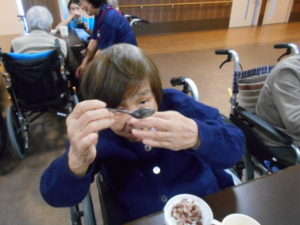 2019/01/29 焼きあんこ餅作り(ファンコート郡山) こんにちは(*^^)v 弐番館では、1月23日に「焼きあんこ餅作り」を行いました!! 皆さまに具材を混ぜて頂き、生地にあんこをのせ、 ホットプレートで焼いたら…焼きあんこ餅の完成です☆彡 甘酒と一緒に召し上がり、楽しく美味しい時間が過ごせました✿