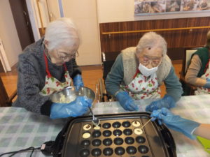 2019/02/16 バレンタインのおやつ作り(ファンコート郡山) 皆さんこんにちは! 今月は2月13日にチョコ味のベビーカステラを作りました! カステラの中にチョコやフルーツを入れ、抹茶・ココア・プレーンの 三種類の味を作りました。味と食感に変化をつけて飽きが来ないおやつを 作ることが出来ました! 季節の行事であるバレンタインを感じることも出来、お客様も喜ばれていました♪ また来月もお客様に喜んで頂けるイベントを考案して参りますので、宜しくお願い致します。